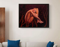 The original oil painting shown measures 24" high and 30" wide. It comes in a black shadow gap frame. Please contact me for details.